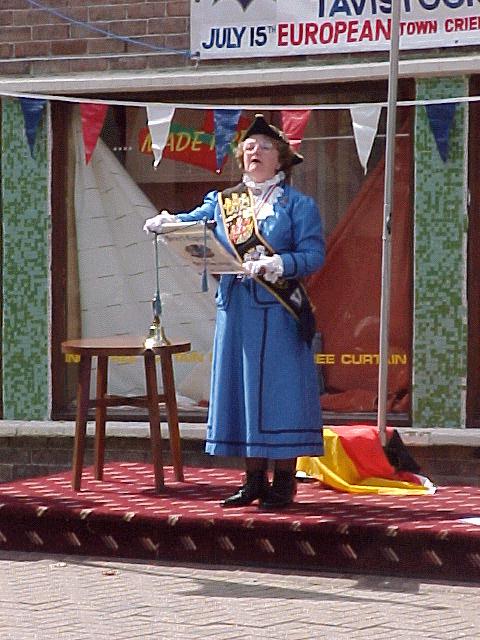 Saturday 15 July 2000 was Tavistock's Carnival Day. Carnival is organised by the Tavistock Lions Club to raise money for local charities. As a special event for the Millennium Year Carnival, Tavistock's Town Crier, Bob Rose, arranged for Tavistock to host the European Town Criers' Championship.