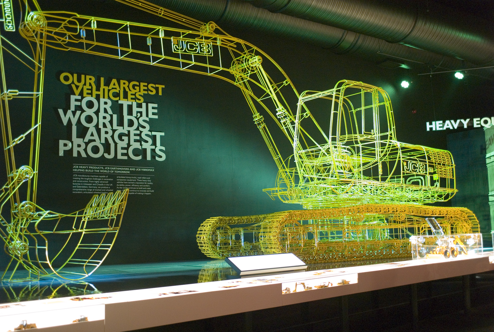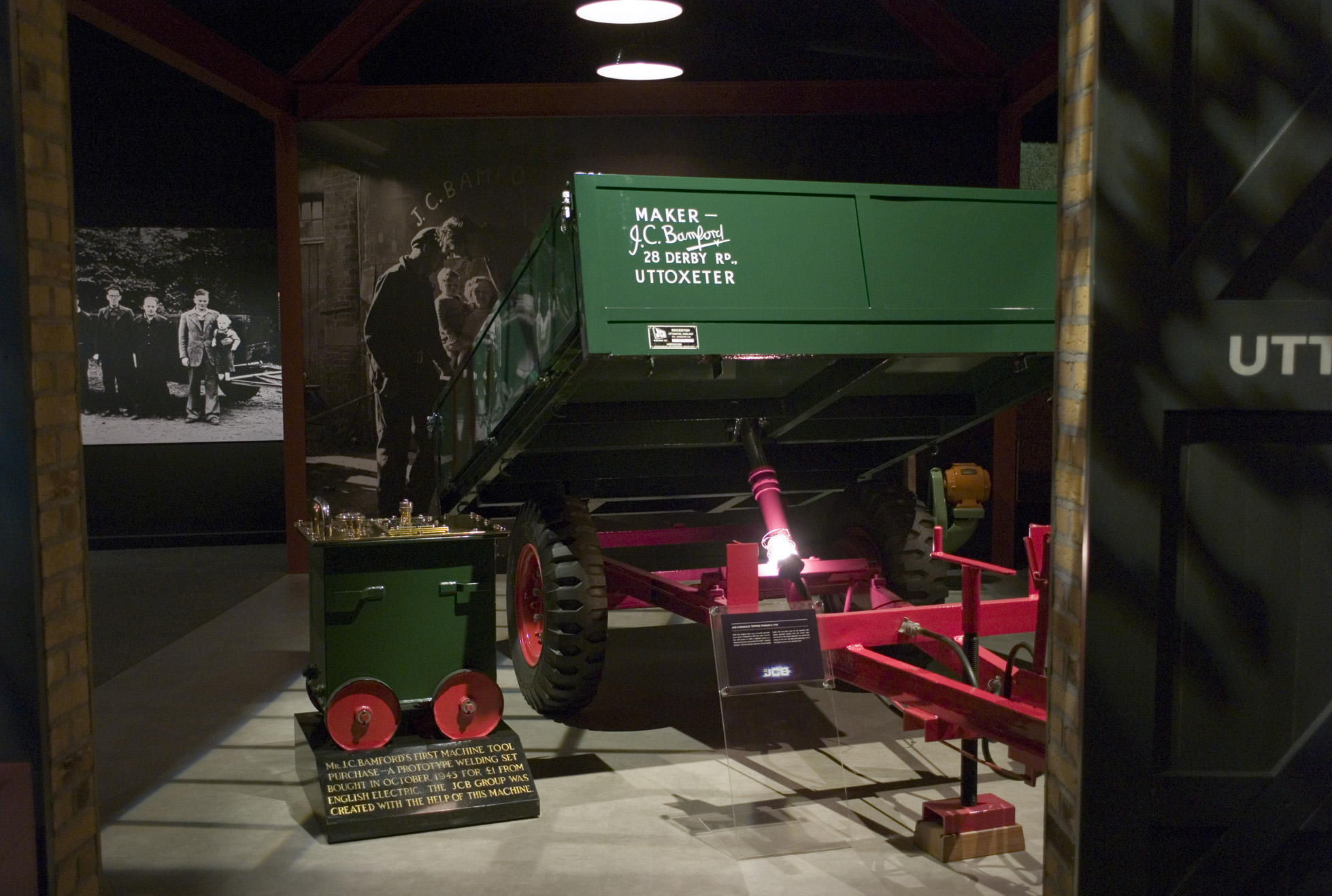 JCB, founded in 1945 by Joe Bamford, remains a family-owned company. It entertains many thousands of visitors every year, employing retired personnel to conduct parties around the factory site. The large exhibition hall displays examples of the company's products from 1945 to date.