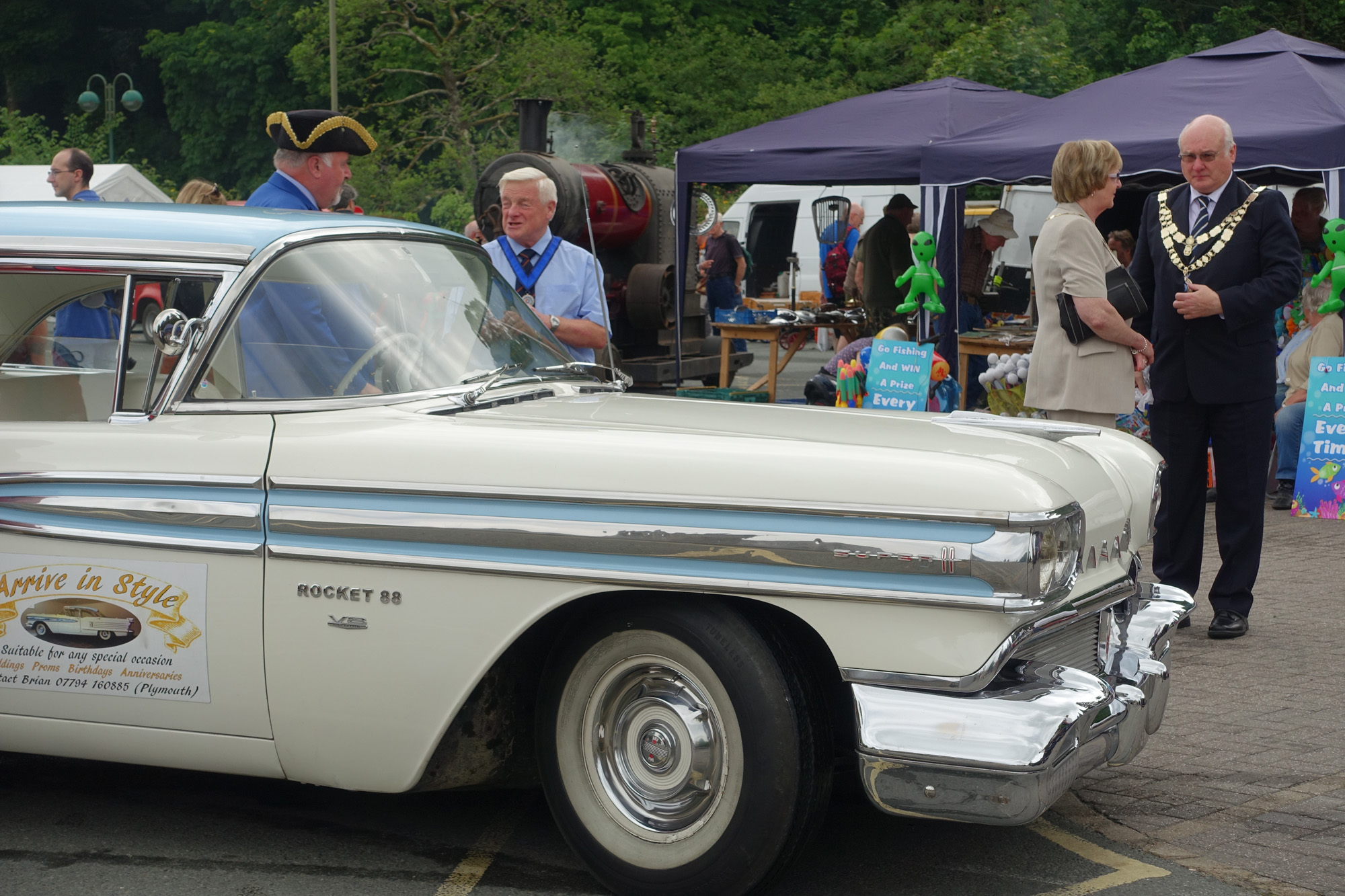 Nine members brought their Bentleys to Tavistock for the annual Steam Fair, organised by the Robey Trust. A Rolls Royce Twenty joined in our line and was used to ferry local Mayors to and from the show.