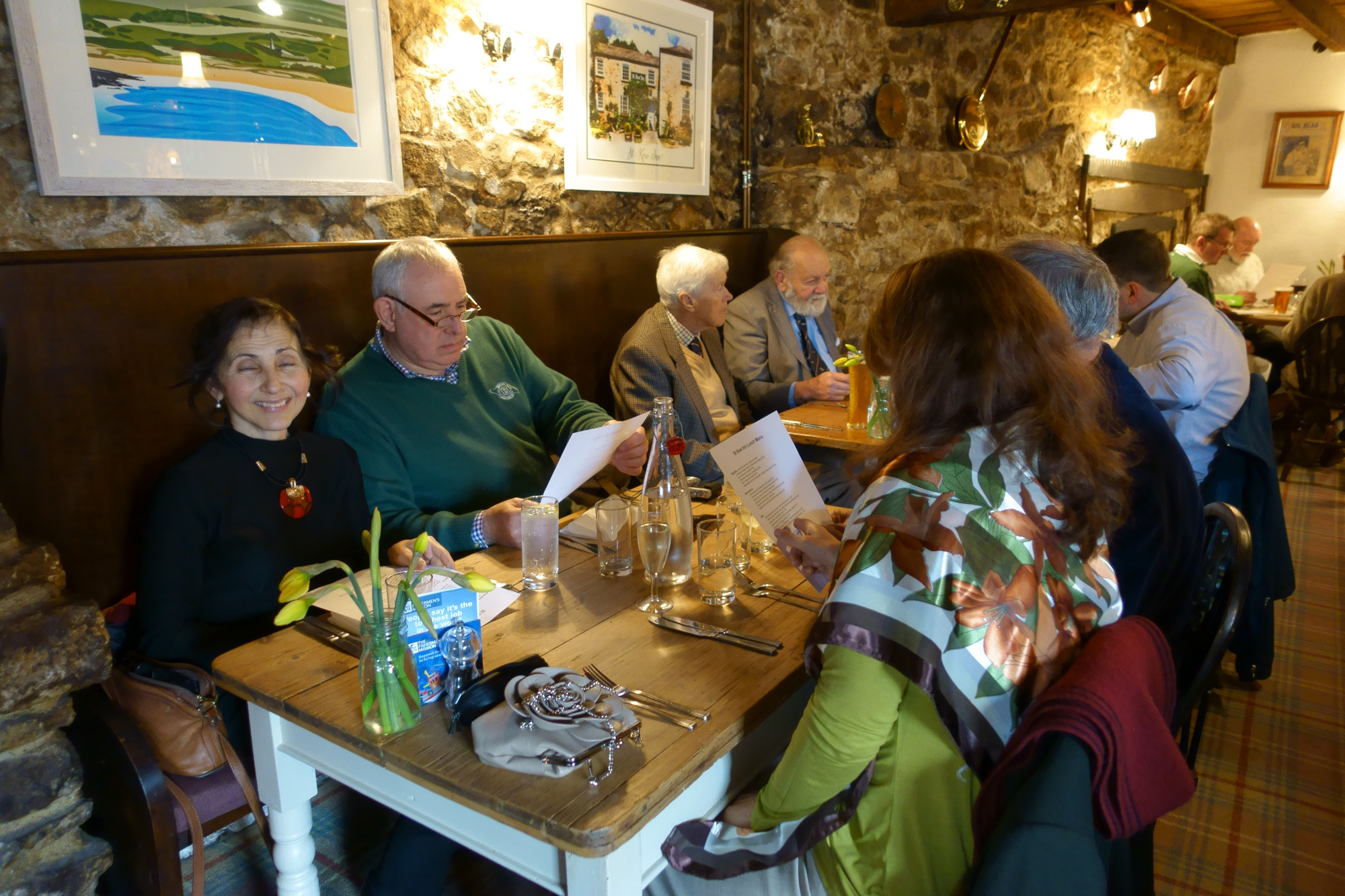 Some twenty members and guests made the journey to St Kew for this month's mid-week lunch at the St Kew Inn. Mercifully, the weather was dry, though the air ouside was cold. Inside, we were warmed by log fires and good food.